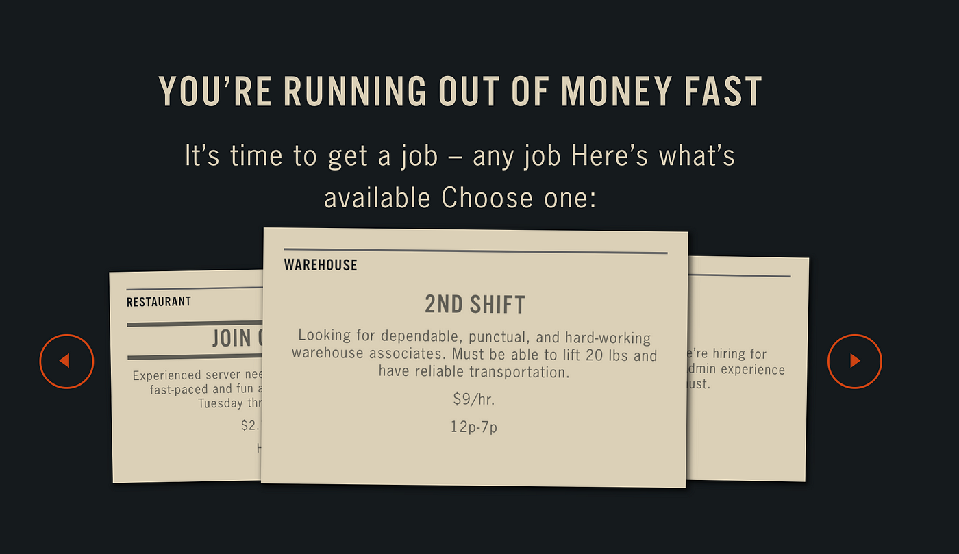 I joined the team to deliver two elements, the overall design and project management, and conducting research, both as an academic and user researcher. In this post I’ll talk more about the latter across the development process. To begin, a paper prototype was designed of TeachQuest (then called Teachmatch), to test the concept of a ‘choose your own adventure game’ very much in the scope and style of Uber Drive and Spent.